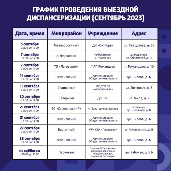 График работы выездных пунктов диспансеризации в Подольске в сентябре 2023 года