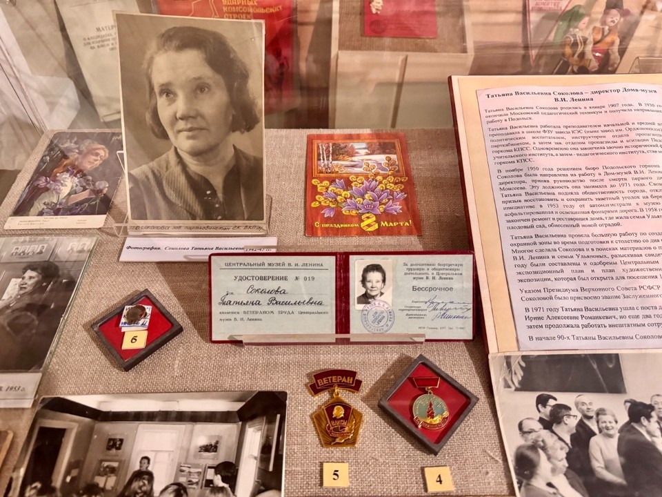 Одна часть экспозиции рассказывает о Татьяне Соколовой, которая прошла впечатляющий профессиональный путь от преподавателя средней школы и школы ФЗУ завода КЭС (ныне завод имени Орджоникидзе) до директора Дома-музея В. И. Ленина в Подольске. С 1950 по 1971 год она возглавляла музей, превратив его в солидное учреждение, соответствующее всем требованиям мемориального памятника. Даже после ухода с должности директора Татьяна Васильевна продолжала работать в музее сначала как лектор, а затем в качестве внештатного сотрудника, оставив значительный след в его истории.