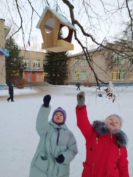 Вместе с родителями и классными руководителями сооружают кормушки и развешивают их не только рядом с учебным заведением, но и вблизи жилых домов, в парках.