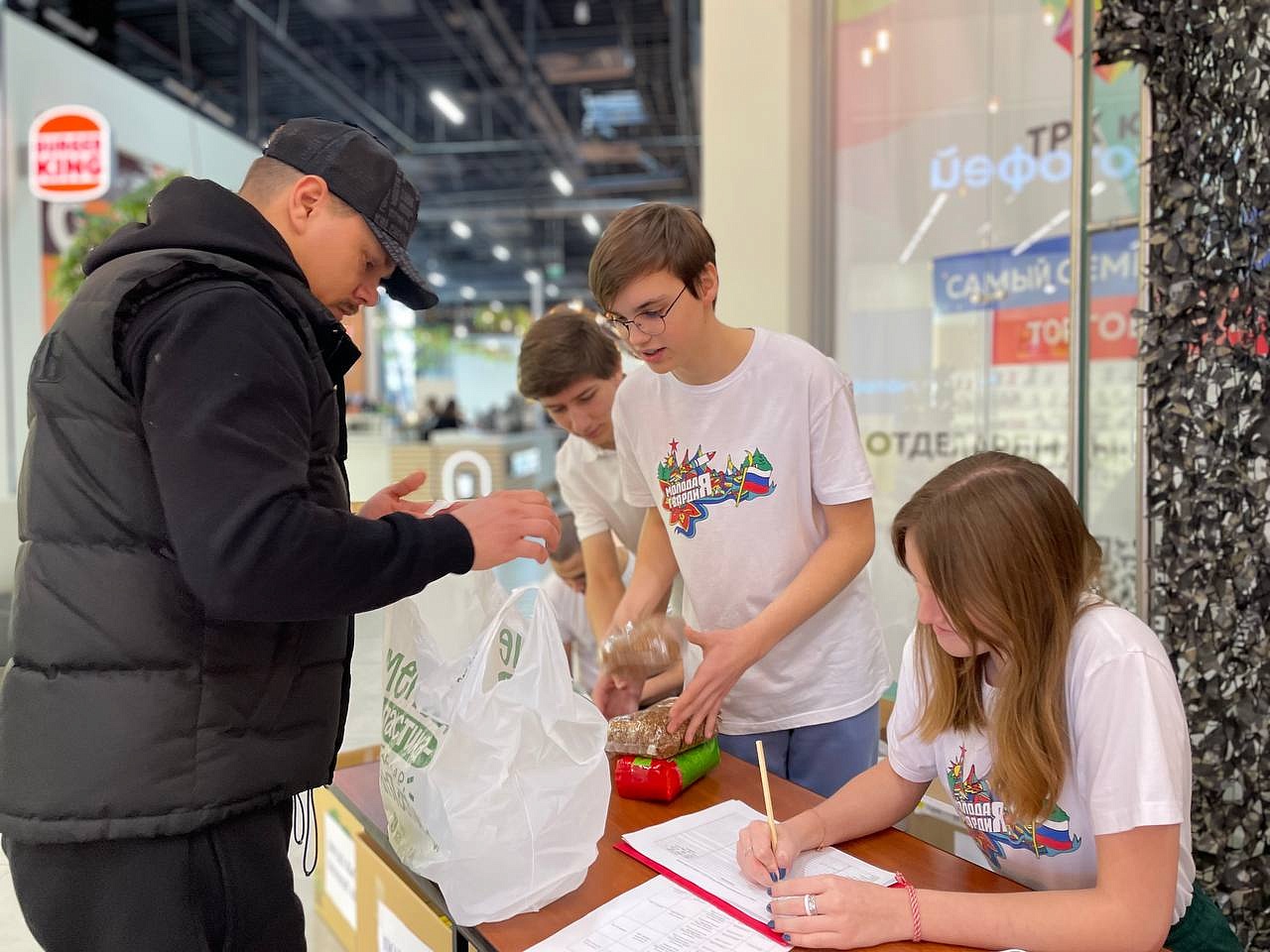 - Мы только открылись, но люди уже, которые идут в магазин, видят нас, и на обратном пути возвращаются, приносят какую-то помощь от себя , - говорит Данила Тореев, волонтёр.