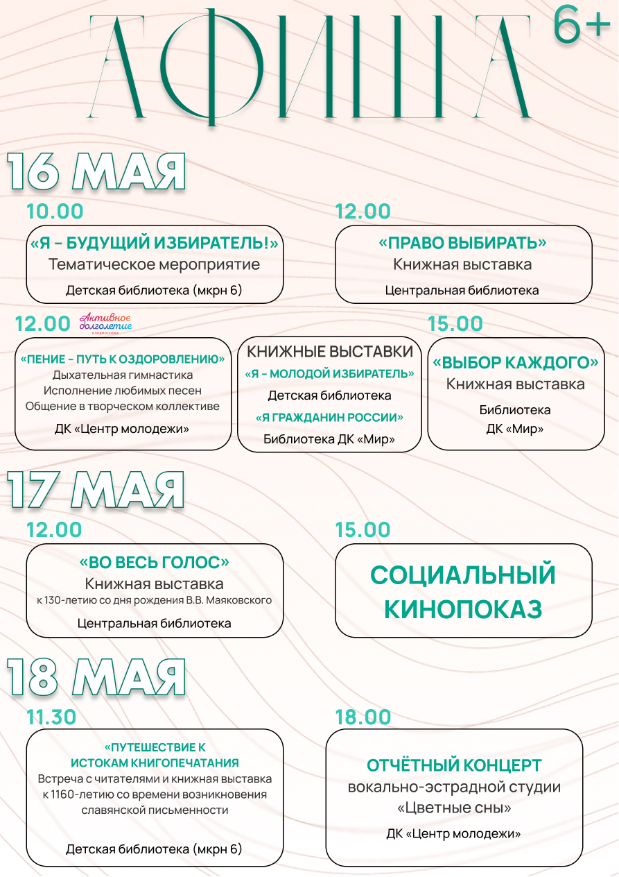 Афиша мероприятий с 16 по 18 мая