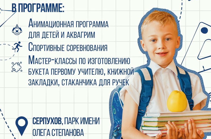 Фестиваль состоится 30 августа в Серпухове при поддержке окружной администрации. Гостей ждут концерт, анимационные развлечения и спортивные соревнования. Присоединиться к школьному фестивалю могут все желающие.