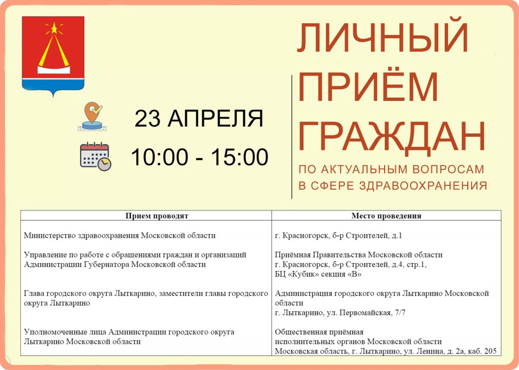 апреля состоится личный приём граждан по актуальным вопросам в сфере здравоохранения.