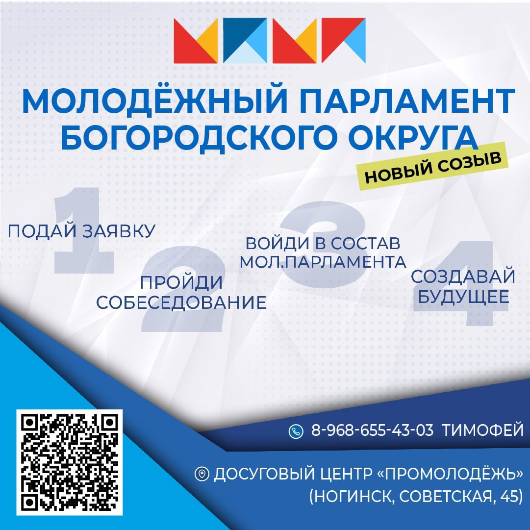 Молодёжный парламент занимается решением актуальных проблем, которые волнуют самую активную, энергичную и горячую часть общества. Главная задача каждого члена парламента – сделать Богородский округ лучше и комфортнее для всех жителей!