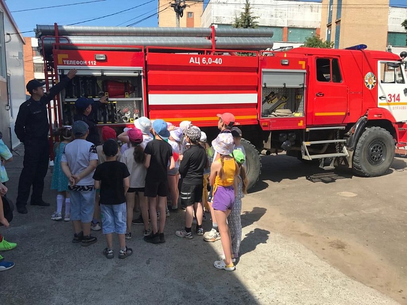 Работники 314-й пожарно-спасательной части ГКУ МО «Мособлпожспас» провели день открытых дверей для воспитанников детского лагеря дневного пребывания, организованного на базе средней общеобразовательной школы «Наши традиции», расположенной в городском округе Воскресенск.