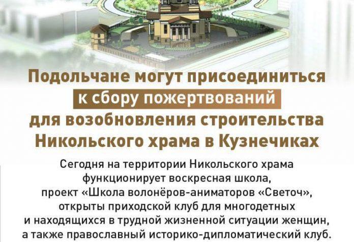 Чин закладки Никольской церкви совершил в 2009 году митрополит Ювеналий. Спустя шесть лет возникли непреодолимые препятствия, и строительство было приостановлено. Сегодня как никогда важно восстановить святыню.