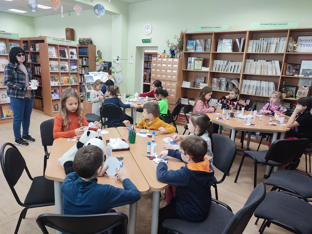 В процессе творчества библиотекарь рассказала детям про рождественские традиции и историю вертепа.