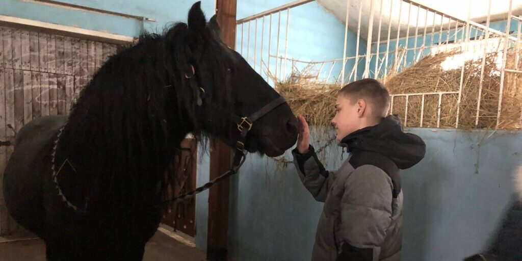 Для занятий иппотерапией огромное внимание должно уделяться тренингу и подготовке лошадей, – продолжает Ирина Владимировна. – Это должны быть здоровые лошади, не имеющие проблем с опорно-двигательным аппаратом, с правильной биомеханикой и балансом, так как при занятиях движения лошади компенсируют и развивают опорно-двигательный аппарат ребенка-всадника. Нужно отметить, что наши фелл пони имеют рост в холке от 120 до 142 сантиметров, это очень удобно для страховки во время проведения занятий с детьми. Мы начинаем работать с нашими лошадками с рождения, что позволяет нам полностью их социализировать, сделать безопасными и контактными.И в доказательство того, что эти слова – абсолютная правда, Ирина Владимировна вместе с дочерью Елизаветой показывают Инне и Дмитрию конюшню, много рассказывают о лошадях. И, конечно же, разрешают пообщаться с фелл пони. Словом, визит в конное хозяйство оказывается очень плодотворным!