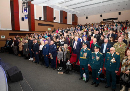 Со сцены всех гостей поздравила глава города Анна Кротова в зале присутствовали участники специальной военной операции и их семьи, ветераны и члены местных общественных организаций.