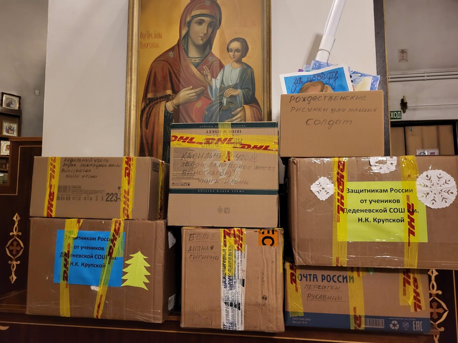 К празднику Рождества Христова школьниками и учителями Деденевской школы были собраны тёплые вещи для солдат. Также в зону СВО было отправлено все необходимое для совершения богослужений: ладан, кадильный уголь, вино, свечи, лампадное масло и иконы. Также солдатам отправили более двух сотен рождественских рисунков, выполненных детьми из детского сада "Дружок", воспитанниками воскресной школы при Свято-Духовском храме деревни Дубровки, учащимися Подосинковской и Деденевской школ, а также ребятами из Центра культурного развития "Подосинковский".