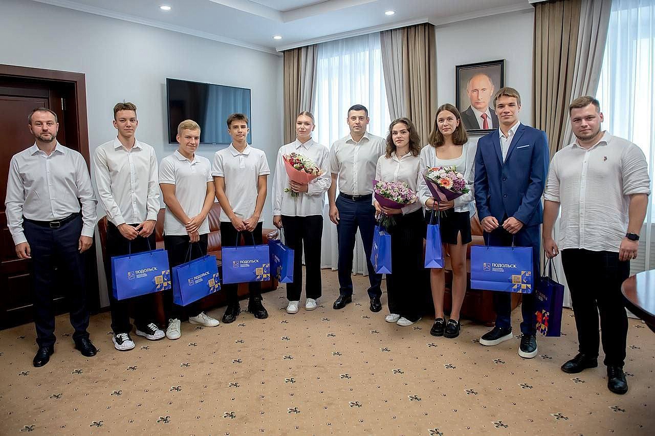 Софья Серова и Степан Горюнов со дня на день отправятся в Екатеринбург на Кубок России. О том, что они хотели бы выступить на важнейших соревнованиях в экипировке с эмблемой Подольска, рассказали лично Григорию Артамонову на встрече в день Молодёжи. Пару недель спустя лучшие пловцы округа в приёмной главы.