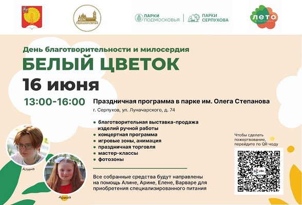 - благотворительная ярмарка изделий ручной работы. Все собранные средства будут направлены на помощь Алине, Арине, Елене, Варваре для приобретения специализированного питания.
