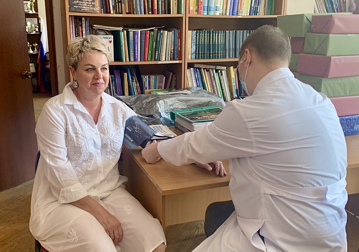 Сотрудники местной амбулатории - врач-терапевт Александр Корабельников и медицинская сестра Диана Умарова - провели первый этап диспансеризации. Врач осмотрел 17 сотрудников учреждения культуры, а медицинская сестра провела забор анализов для лабораторных исследований и ЭКГ.