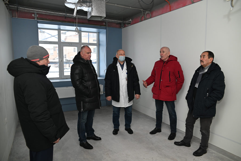 глава Талдомского округа Юрий Крупенин совместно с председателем Совета депутатов, руководителем фракции «Единая Россия» Михаилом Аникеевым, профильным заместителем главы Юрием Воробьевым, и.о. главного врача Талдомской больницы Александром Орловым и профильными специалистами проверил ход капитального ремонта корпуса «Б» Талдомской больницы и строительства перехода между корпусами «А» и «Б».