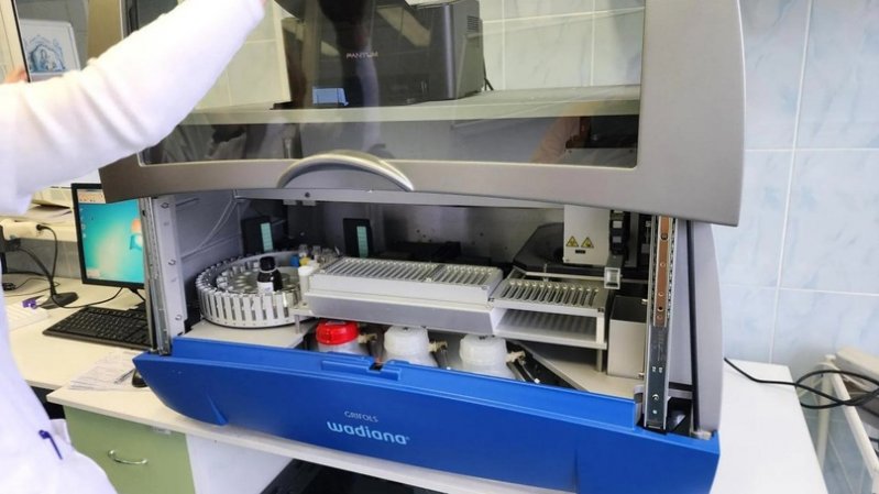 «Аппарат содержит центрифугу, колесо для проб и реагентов, термостат. Сам считывает все штрихкоды, что практически исключает фактор человеческой ошибки. Один прибор совмещает в себе пять», — рассказала врач лаборатории Елена Мартынова.