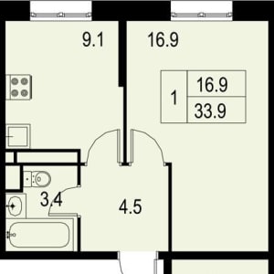 - Общая площадь: 33.9 м²