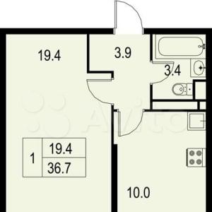 - Общая площадь: 36.7 м²